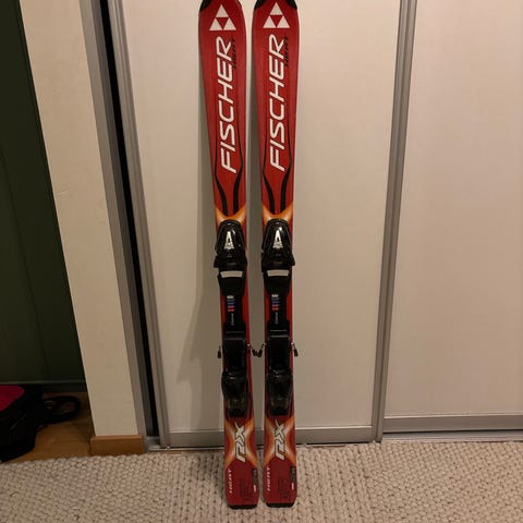 X-Team slalomskidor, 120 cm. Skidorna har integrerade bindningar. Funkar fint! Stavarna kan ingå om man vill.