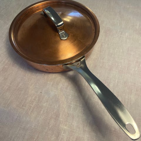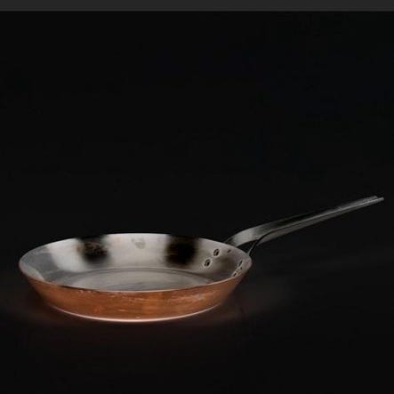 Oanvänd stekpanna i koppar med lock från Dozzo 26cm.