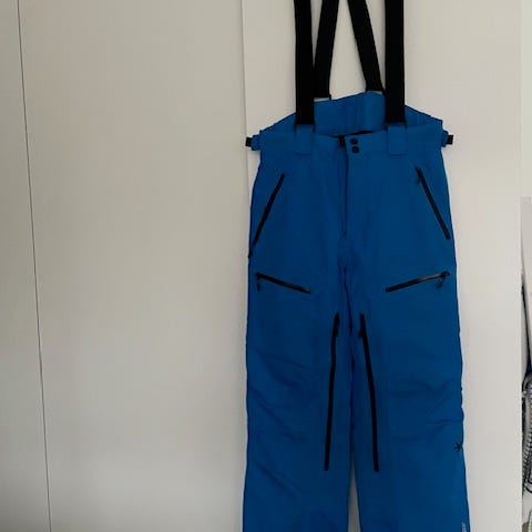Ett par turkosa Everest byxor med justerbar midja och benlängd. Byxorna har fickor och är i storlek barn.