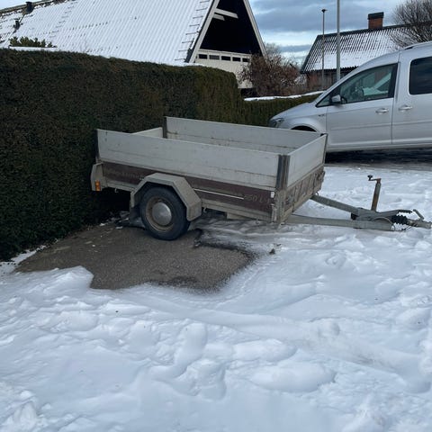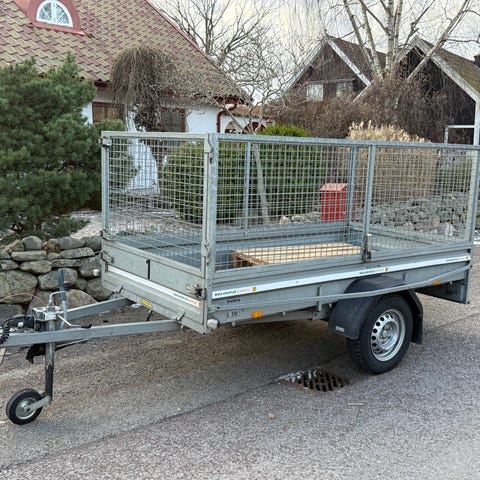 Släp 750kg i gott skick säljes. Fällbara fram och bakläm. Tippbart.