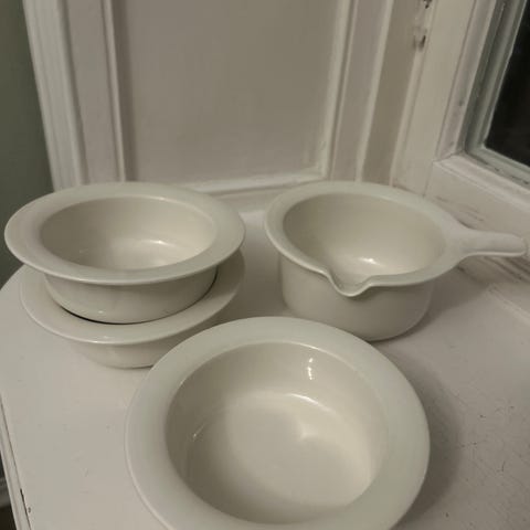 Säljer tre ”filskålar” från Höganäs. Oanvända men har några små märken som jag tror finns från produktionen. Inga repor i skålarna eller så.