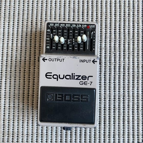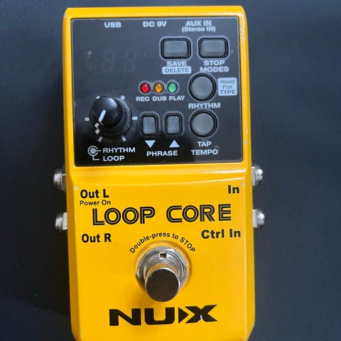 US Dream gitarrpedal. Kompakt effektpedal med tre reglage på ovansidan för justering av ljudet samt fotomkopplare längst ned. Pedalen är avsedd för elgitarr och används för distorsion av gitarrljud.