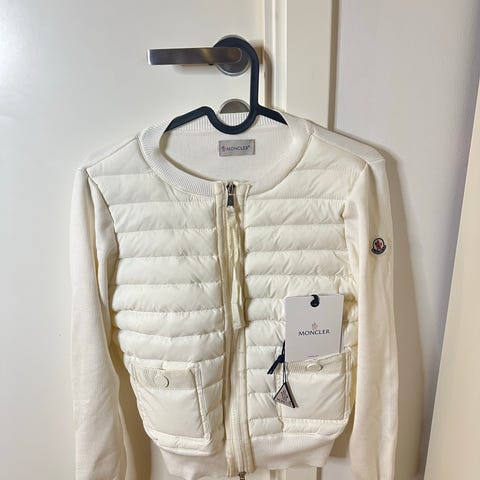 Snygg och trendig cardigan med quiltad framsida och stickade ärmar. Storlek 1, passar xs/s dam