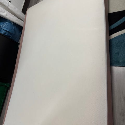 IKEA säng 140x200 med resårbotten i grått tyg och vit bäddmadrass. Sängen står på ben och passar för ett sovrum eller gästrum. Bäddmadrassen är quiltad med jämnt fördelade knappar. Storleken motsvarar en enkelsäng eller mindre dubbelsäng . Mycket bra skick.säljer på grund av flytt.