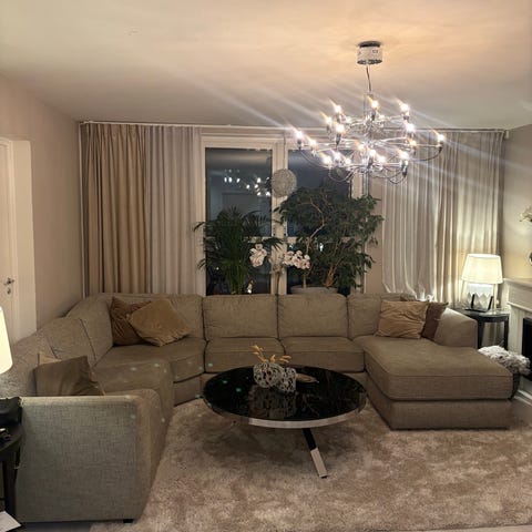 Större Soffa i mörkgrått utförande som är sparsamt brukad.