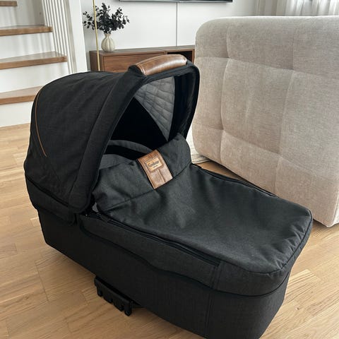 Babyzen Yoyo liggdel "bassinet" i svart färg. Liggdel för montering på Babyzen Yoyo-chassi. Utrustad med sufflett, vadderad insida och madrass för spädbarn. Fästen för enkel montering på vagnen syns på sidorna. Passar för användning från nyfödd i kombination med kompatibelt Babyzen Yoyo-underrede.