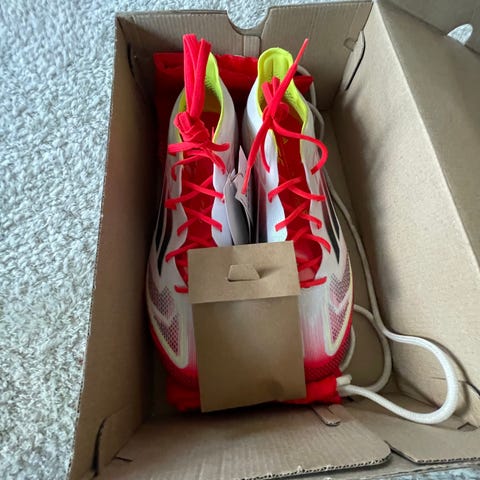 Adidas F50 Pro FG fotbollsskor för spel på naturgräs (firm ground). Skorna har en blå flerfärgad ovandel med snörning och dobbar anpassade för fasta underlag. Storlek EU 41 1/3 (US 8, UK 7,5). Levereras i originalkartong enligt bilderna. Helt nya och orörda, kartongen lite skador på men inga farliga. Kan diskutera pris!