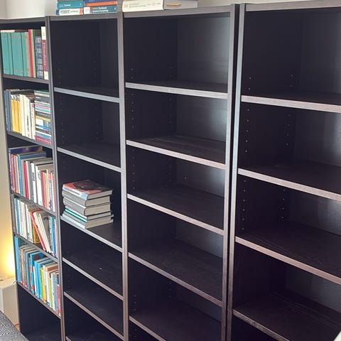 Säljer vår fina svarta Billy bokhylla för att vi ska flytta och vill ha en ljusare, den är mycket sparsamt använd och i mycket fint skick. Hyllorna kan flyttas!