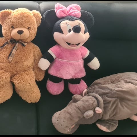 GlitterPals mjukisdjur med paljettyta. Ena figuren är rund med djuransikte och vändbara paljetter i rött och silver. De två andra figurerna är stjärnformade med vändbara paljetter i rött och guld. Paljetterna kan strykas åt olika håll för att ändra färg och mönster. Passar som mjuk leksak eller dekoration i barnrum.
