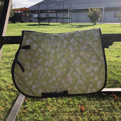 Sparsamt använvänt schabrak med fårskinn undersida vid sadel