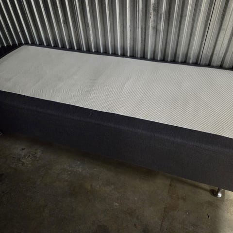 Säljer en väldigt fin och bekväm enkelsäng i ljusgrått tyg