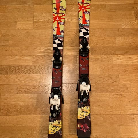 Rossignol Pow’ah 110 cm längdskidor med bindningar i barnstorlek. Skidorna är cirka 110 cm långa och har en rosa dekor med hjärtmotiv. Modellen är avsedd för klassisk längdåkning.