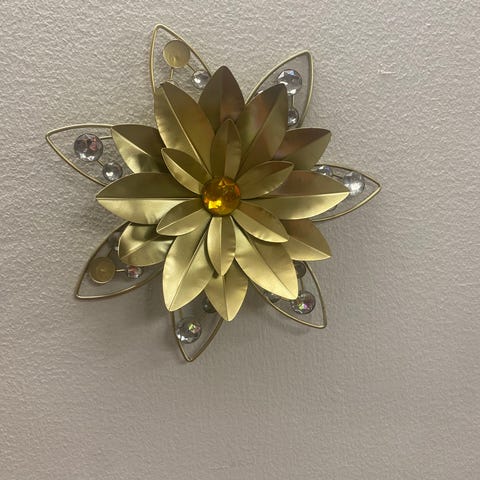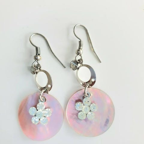 Blomformad berlock i akryl i lila färg. Berlocken har fem kronblad och ett runt hål i mitten samt en metallring för upphängning. Smycket är handgjort från Familjesmycken. Ca 7,5 cm.