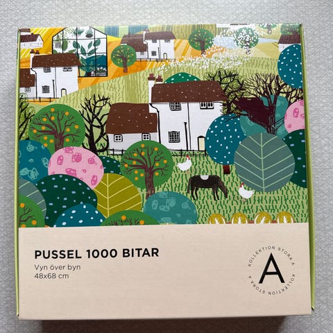 Pussel med 1000 bitar med motiv av stadsvy över Fuji. Färdigt pussel mäter cirka 68x48 cm.