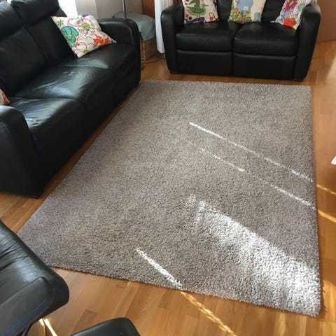 Ikea matta i grå färg. Rektangulär modell som passar exempelvis under soffgrupp eller matbord. Mjuk, tät lugg som ger en ombonad känsla och dämpar ljud. Lämplig för vardagsrum, sovrum eller andra sällskapsytor i hemmet. Inga husdjur eller rökare i huset. 160-230. Den kan behöva tvättas.