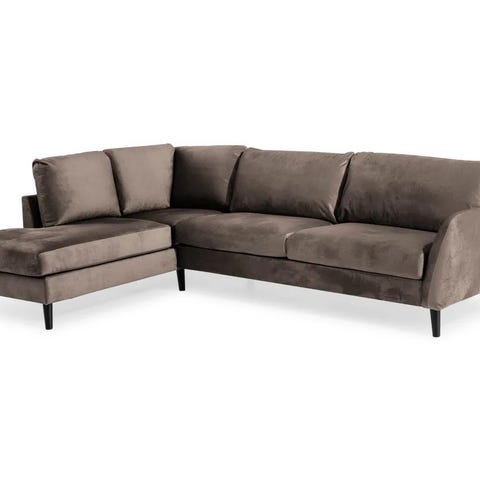 Weekend soffa I skönt sammetstyg. Dynorna är stoppade med fiberfill för att få en dunliknande karaktär som gör att soffan är väldigt mysig och mjuk att krypa upp i.