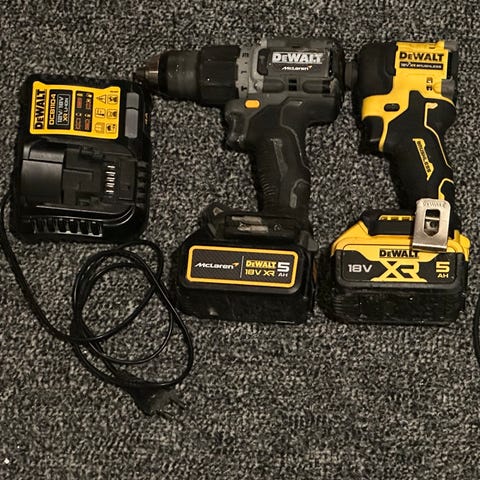 DeWalt slagborrmaskin i låda finns lite tillbehör med allt syns i bild. Fungerar fint