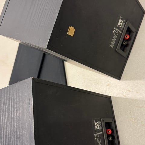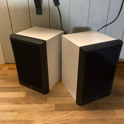 Liten smidig högtalare ett par som kan vägghängas, perfekt som bakhögtalare i ett hembiosystem.