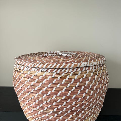 Flätad korgkruka av trä,