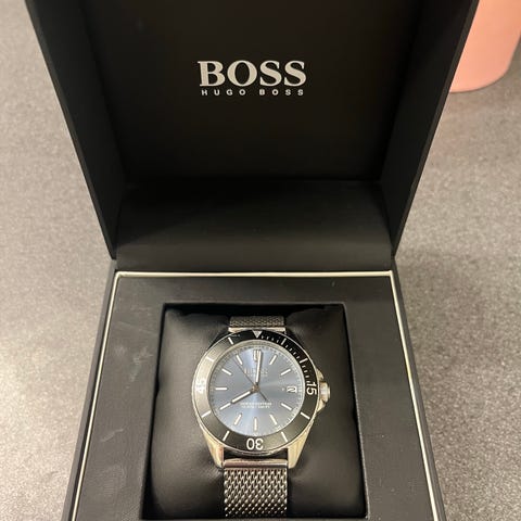 Stilren klocka från BOSS med grön urtavla, silverfärgat armband i metall och guldfärgade detaljer. Klockan har kronograffunktion, datumvisning och tydliga indexmarkeringar. Perfekt accessoar för dig som vill sticka ut med en modern och elegant look. köptes för 5000