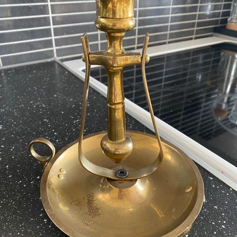 Vintage ljusstake i mässing, ca 20cm, kan stå på bord eller hängas. Klassisk skeppsljusstake