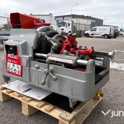En otroligt välvårdad fin Ridgid 6000 Gängmaskin. Extremt varsamt o sparsamt använd på ett lantbruk vid akutbehov. KOMPLETT med gänghuvuden, maskinstöd vid gängning ingår oxå.