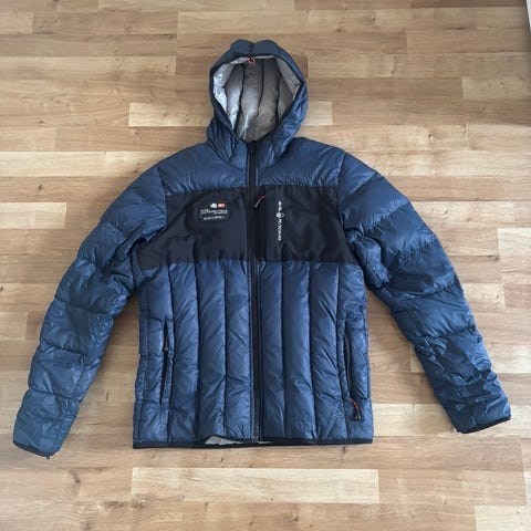 En ultralätt dunjacka av märket SailRacing Flood UltraLight Jacket. Använts 4-5 ggr, och då endast fram och tillbaka till jobbet. Sailracing.