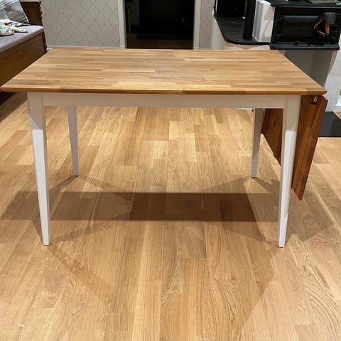 Bord med mittendel som ni kan fälla in under bordet för att göra det mindre.