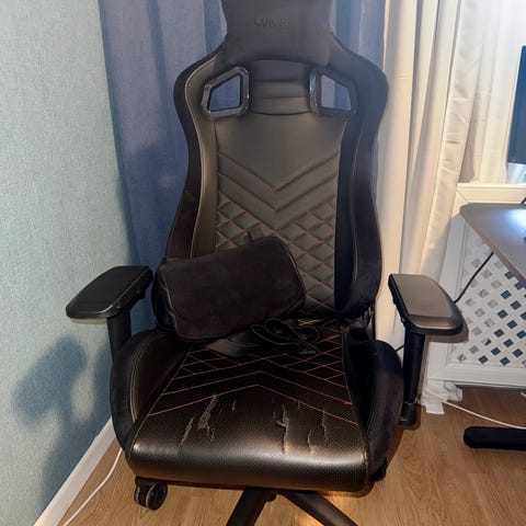 Svart gamingstol Arozzi Toretta. Går att luta i olika lägen och justera höjd. Armstöden går både att justera höjden på samt vinkla. Medföljer en nackkudde och en kudde för svanken (löstagbara). I fint använt skick, kan finns någon mindre färgskiftning på sitsen som är det som är mest synligt använt (se bild 2).