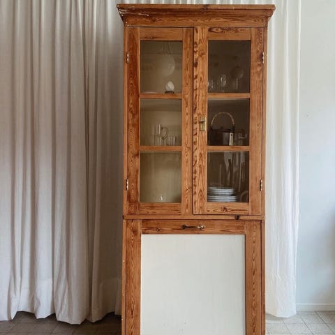 Vitt träskåp med två lådor och dubbeldörrar