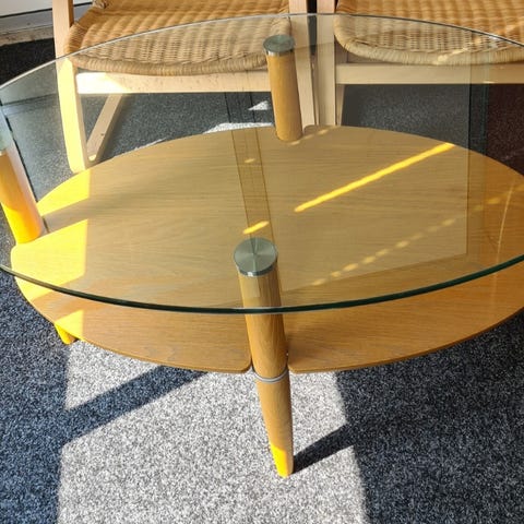 Jättefint glasbord, förmodligen inköpt vid 60-talet. Välbehållet och i nyskick, 1 cm tjock tung glasskiva. Stadigt och rejält. Kan levereras i närheten eller till östersund/sundsvall.