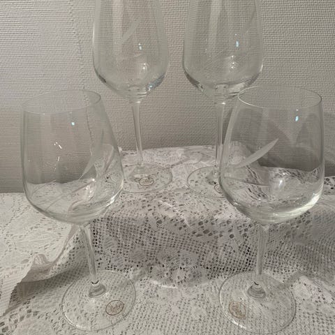 2 st nya Siluett rödvinsglas 48 cl i kristall med handslipad dekor, från Fyrklövern, 1 vintage fransk vin-och champagne termometer i träfodral samt en rikt illustrerad vinbok av Fiona Beckett i oläst skick.