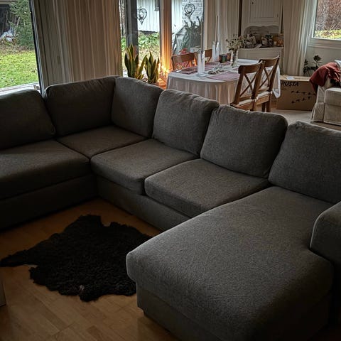 Säljer min soffa pga flytt den är rätt så stor så måste bäras ut via balkongen.