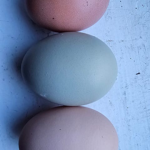 Creme legbar, silveruddsblå, hedemora och bandraser som lägger gröna ägg.