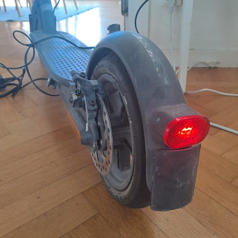 Elscooter i svart färg med ståplatta och styre med handbroms. Utrustad med digital display som visar kördata. Framhjul med däck anpassat för stadskörning. Passar för kortare transporter och pendling i urbana miljöer. Nätkabel och övriga tillbehör framgår inte av bilderna.