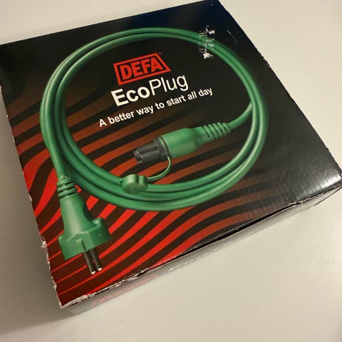 Grön elkabel med stickpropp och anslutningskontakt. Lämplig för anslutning av elektrisk utrustning där en förlängd räckvidd behövs. Kabeln har en skyddskåpa över kontaktdonet för att skydda mot smuts när den inte används.