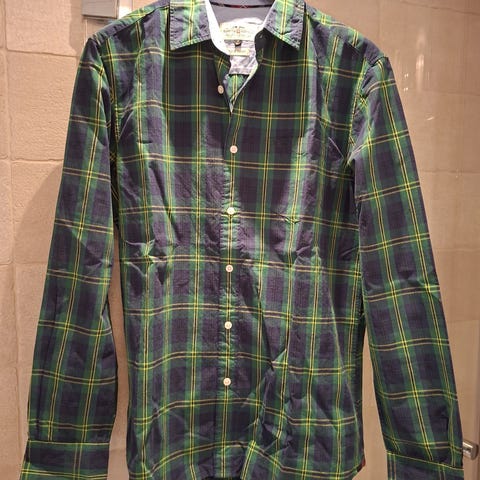 H&M L.O.G.G. skjorta för herr i storlek M. Skjortan är i blått rutigt mönster och tillverkad i bomull. Modellen har lång ärm, krage och knäppning framtill med knappar. Två bröstfickor med ficklock och knapp. Passar till vardagsbruk och kan bäras både öppen över t-shirt eller stängd som vanlig skjorta.