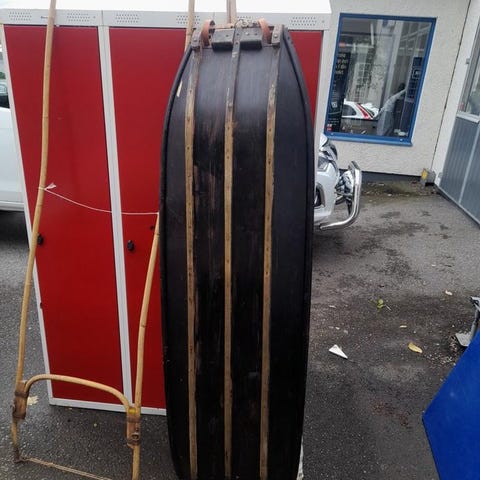 Äldre pulka med ny pulkadrag. Det finns ngt användbar sele som följer med.
