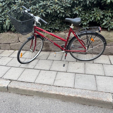 Velocity citycykel i storlek S (43cm) med 28" hjul. Cykeln har turkos färg, ljusa däck samt ljus sadel och handtag. Unisexmodell med låg instegshöjd som passar för vardagscykling i stadsmiljö. Utrustad med pakethållare bak och kedjeskydd. Cykeln har fotbroms bak och handbroms fram samt reflexer i hjulen. Fina detaljer som handtag i läderimitation. I stort sett inte använd, min dotter hann växa i från den. Lämpar sig för en person på ca 145 – 160 cm. Sadeln har blivit lite missfärgad av tid den stått i källaren.