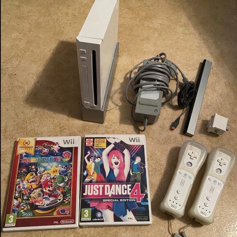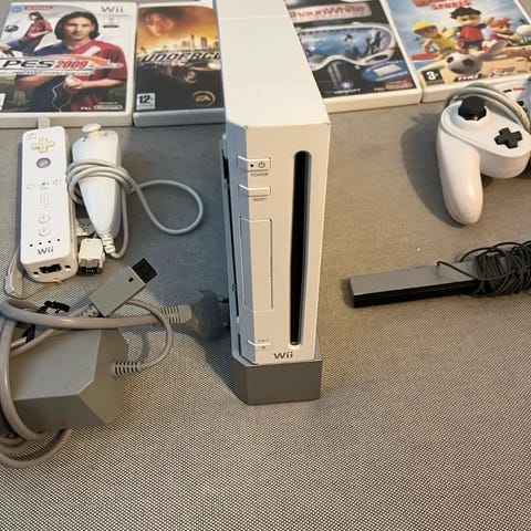 Nintendo Wii med handkontroll och spel
