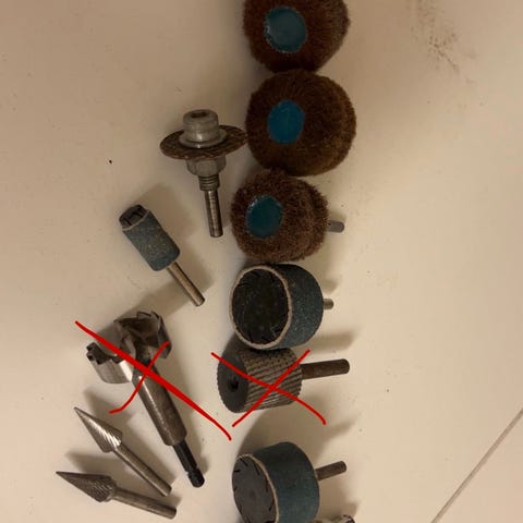 Gunson mjuka polertrissor för finpolera exempelvis knivblad, 14 st med metallaxel passande borrmaskin, oanvända. Nypris 950kr