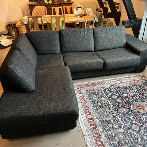 Tresits grå soffa, bäddbar med två längsgående bäddar