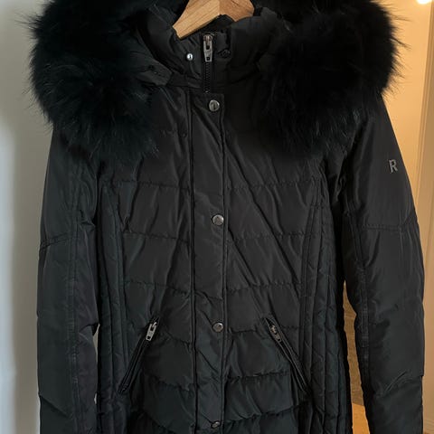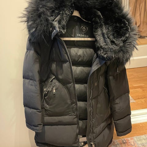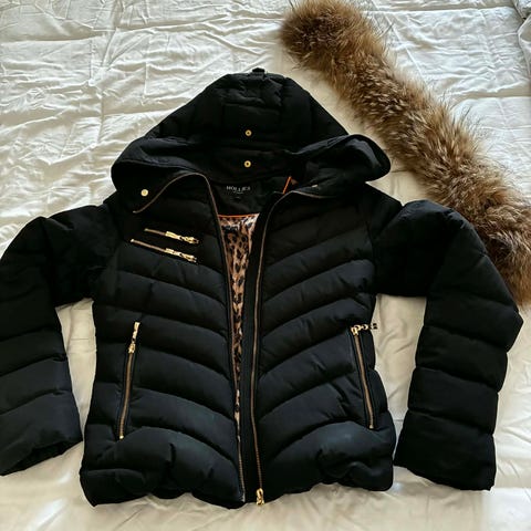 Snygg svart dunjacka från Moose Knuckles med guldfärgade dragkedjor och detaljer. Jackan har stor huva, två snedställda fickor med dragkedja och logga på ärmen. Fodrad med dun för extra värme och har en längre modell som skyddar mot kyla.