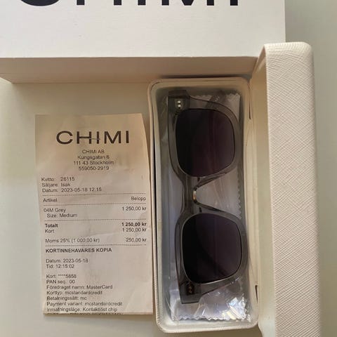 Chimi solglasögon för dam i genomskinlig rosa färg. Modellen har fyrkantig båge i plast med tonade rosa glas. Levereras med hårt etui och originalförpackning enligt bilderna.