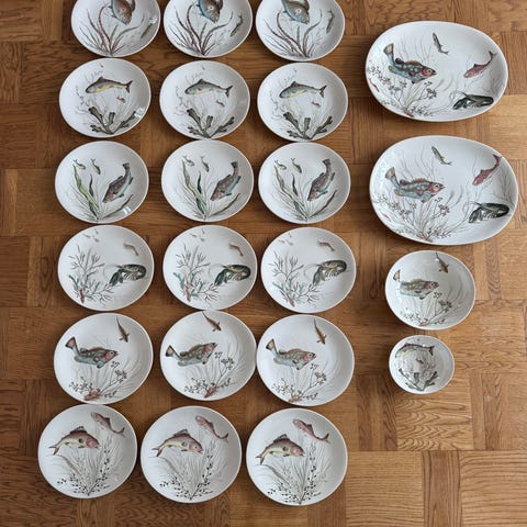 Engelska Skaldjurstallrikar och skål Seafare Johnson Bros