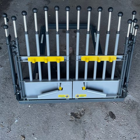 Båsgrindar bestående av 4 sektioner med 10 platser. Pris kan diskturas.