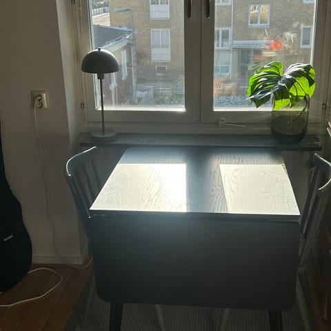Fällbart matbord med lådor i ljus träfaner