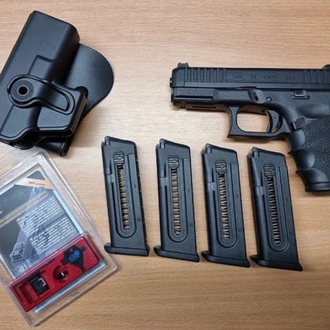 T4e - Training For Engagement. Kaliber .43 Skjuter både gummikulor, stålkulor, peppar-kulor och paintballs. Levereras med flera hundra gummikulor och ask med stålkulor. 8 skott i magasinet. Drivs av co-patron. Magasinpackning lär bytas. Den läcker co.