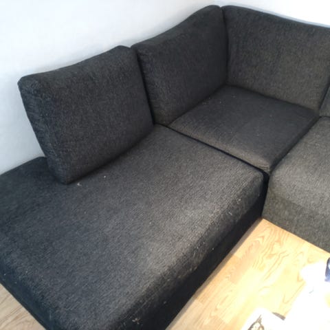 Säljer en soffa från Mio som köptes för cirka 3 år sedan. Soffan är hel och bekväm, men klädseln behöver tvättas. All klädsel är avtagbar och går enkelt att ta av för rengöring.