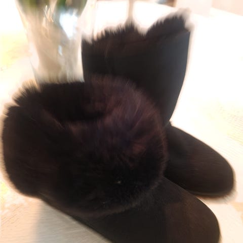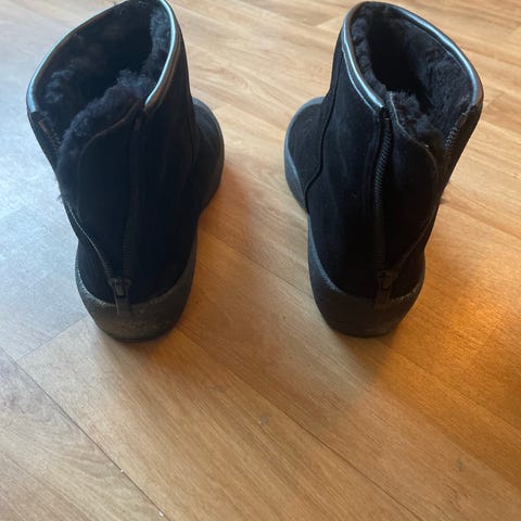 Italienska " after ski" stövlar i äkta get skinn, nya. Svarta i st 41 MEN de är små i storleken så de är svensk 40. Gummisula.